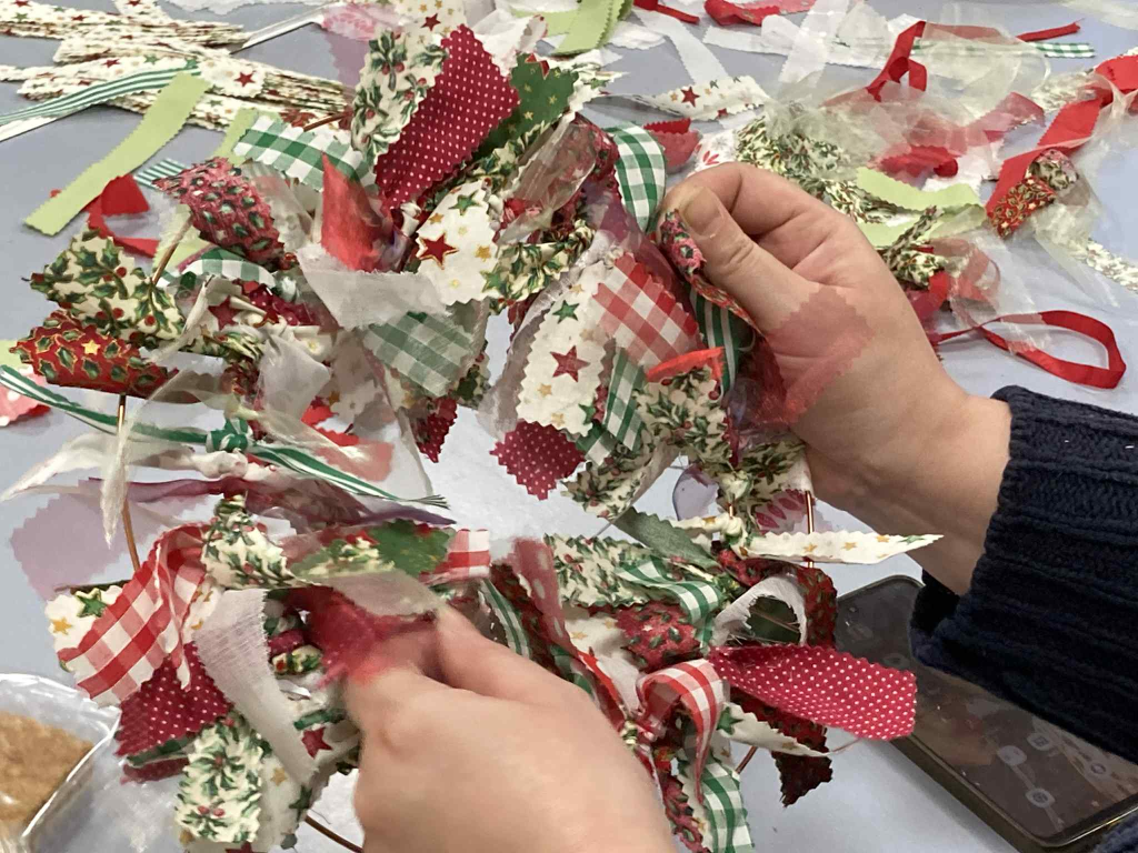 In November the craft group also met one Saturday afternoon for our first Crafternoon where we enjoyed making rag wreaths for Christmas, The room was a ‘hive’ of activity and ‘buzzing’ with chatter. We hope to run more Crafternoons (in addition to our regular monthly Craft Group meet-ups) over the coming year! I’m personally quite impressed with how they all turned out…