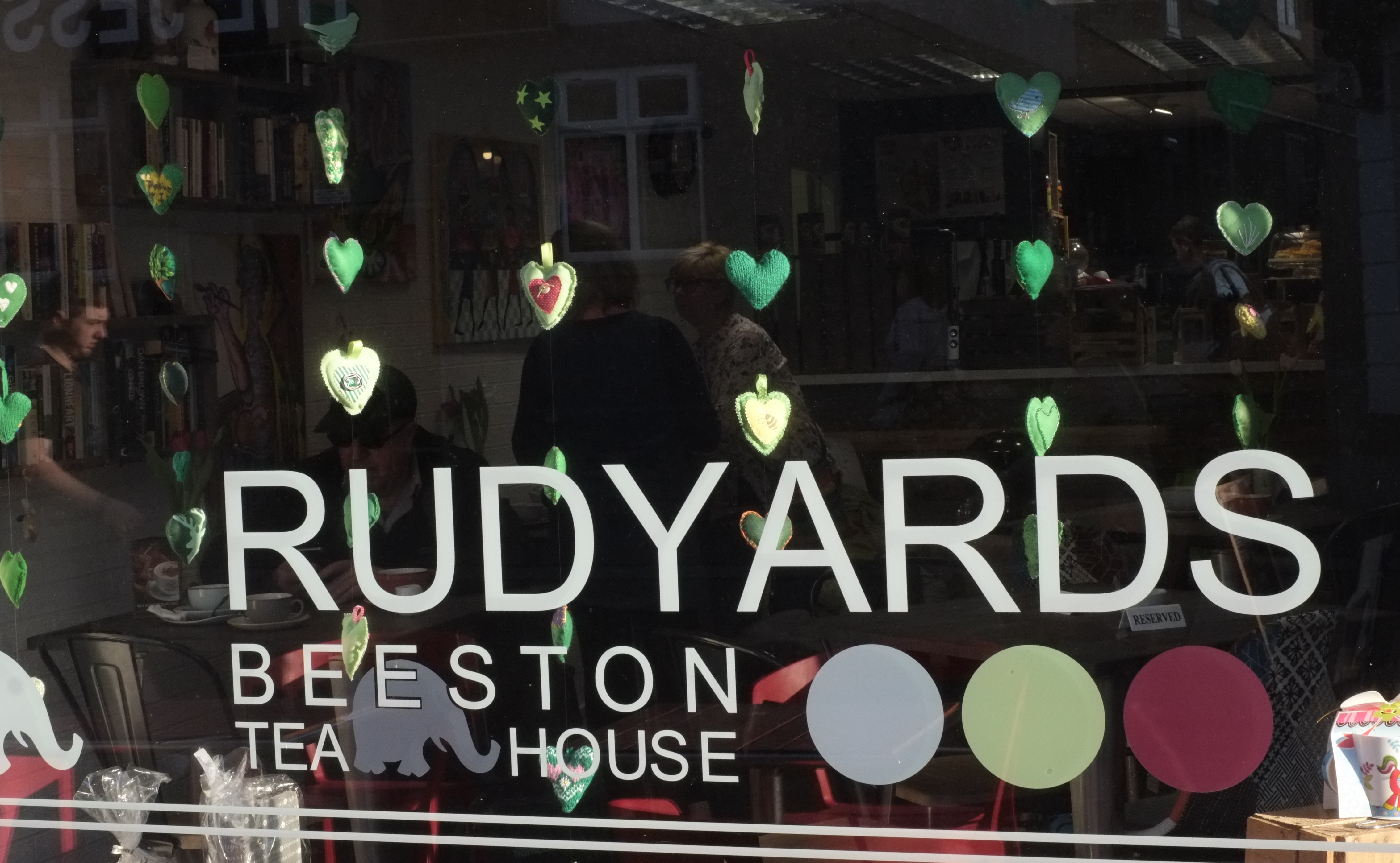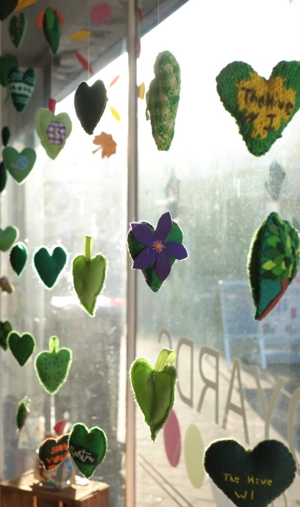 In February we hung our green heart display in the window of Rudyard’s Tea House on Beeston High Road.