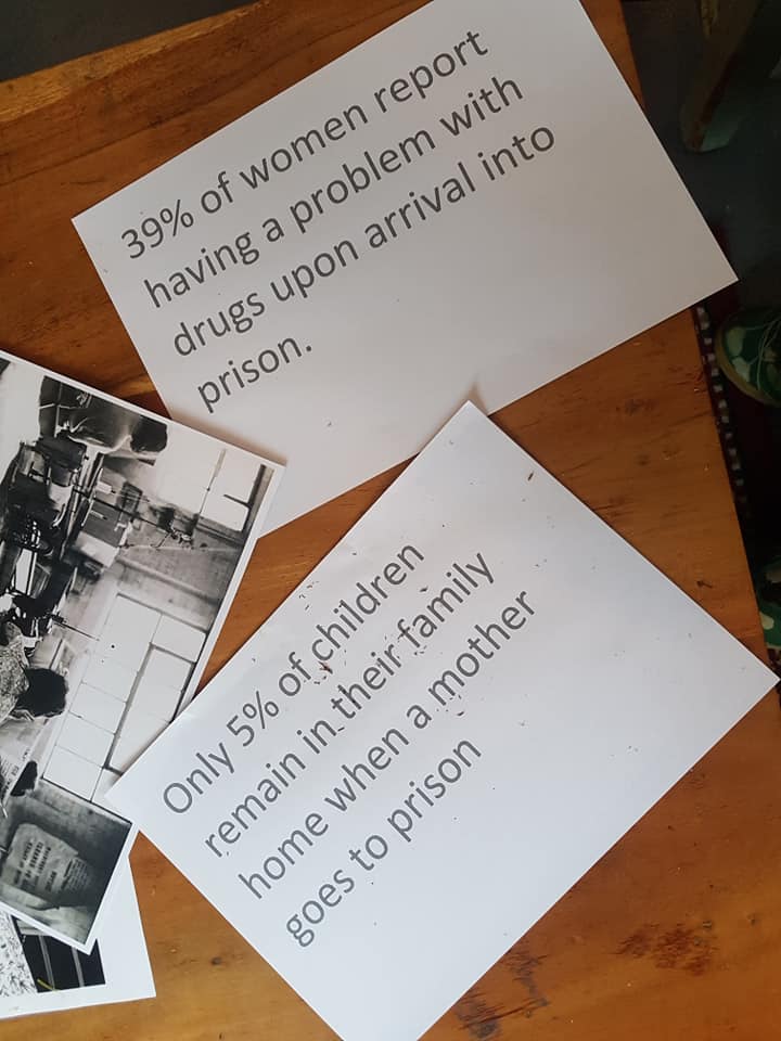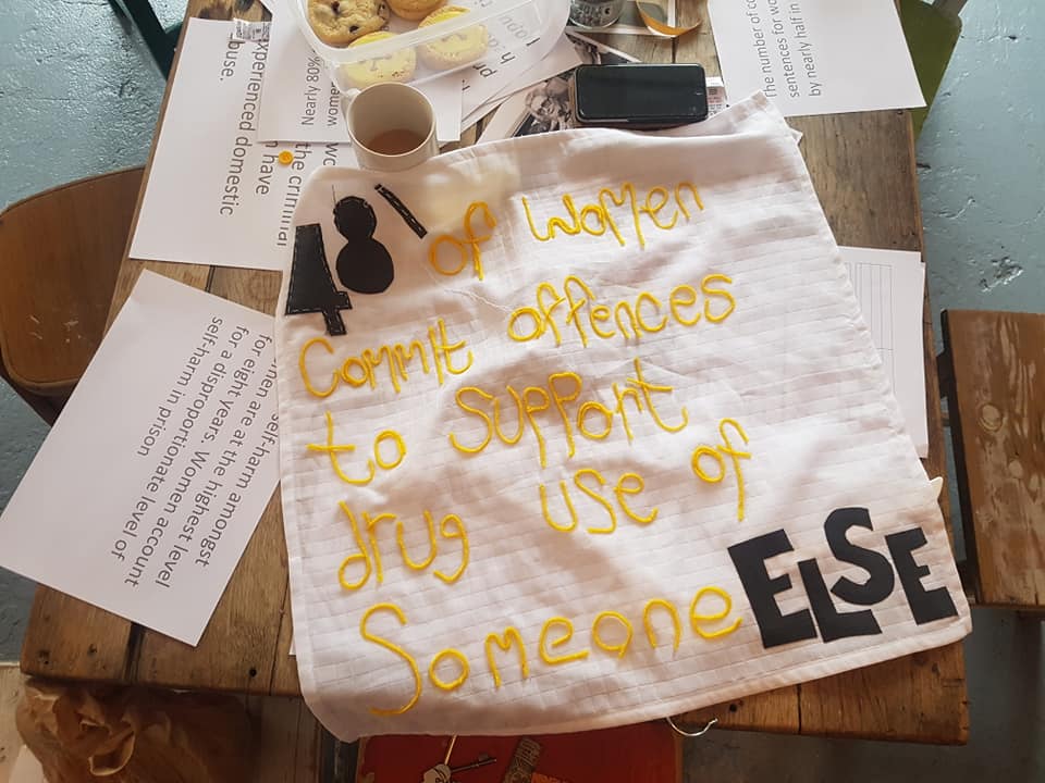 At the sessions participants created textile pieces that will be displayed in the exhibition itself. These textiles included squares of white cotton onto which facts and statistics about women’s prisons and prisoners were designed onto them. Textiles was the chosen medium as historically women were given a lot of sewing work to do during their sentences.